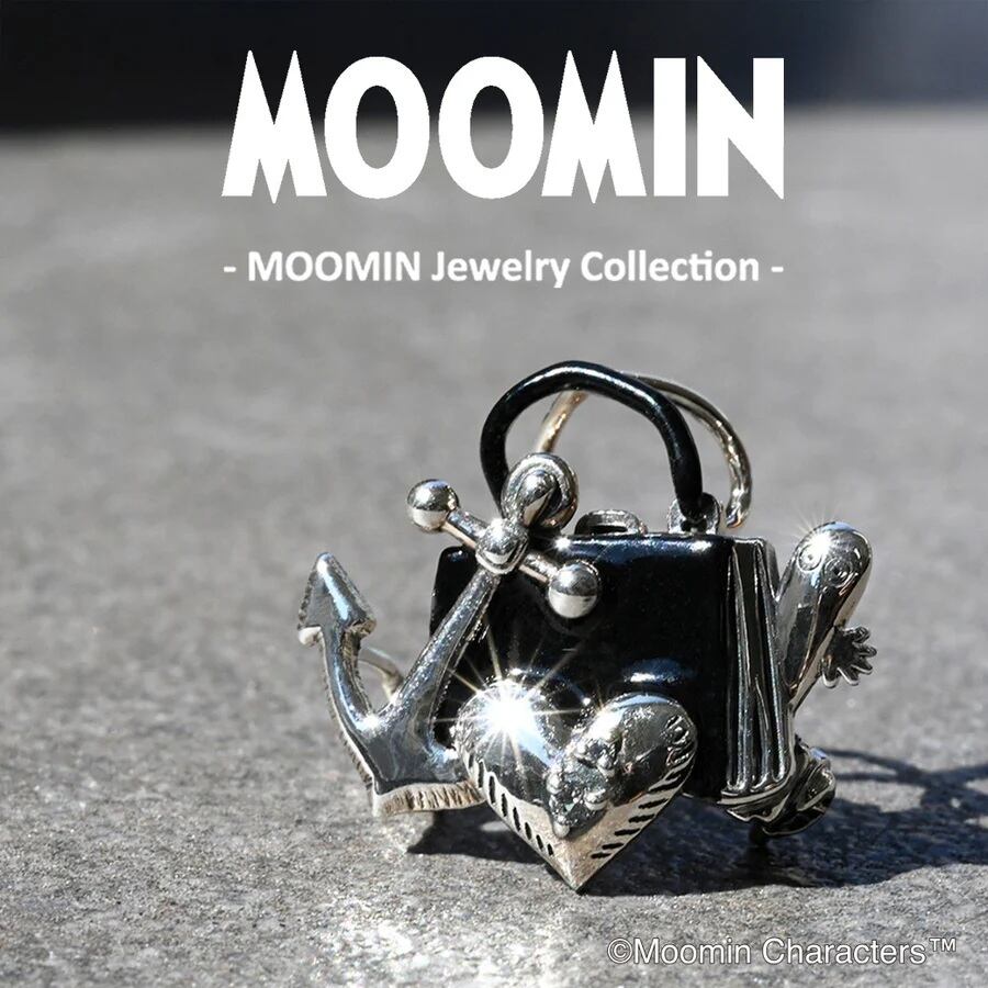 出会いのきっかけとなったムーミンママのバッグをモチーフに黒エナメル仕上げ、ニョロニョロと錨、ハートがぎゅっと集まった、とてもかわいらしいブローチペンダントです。