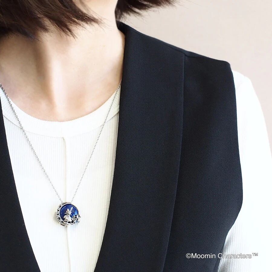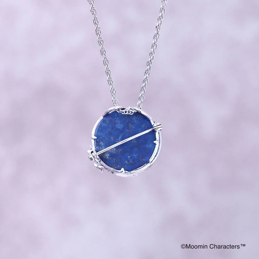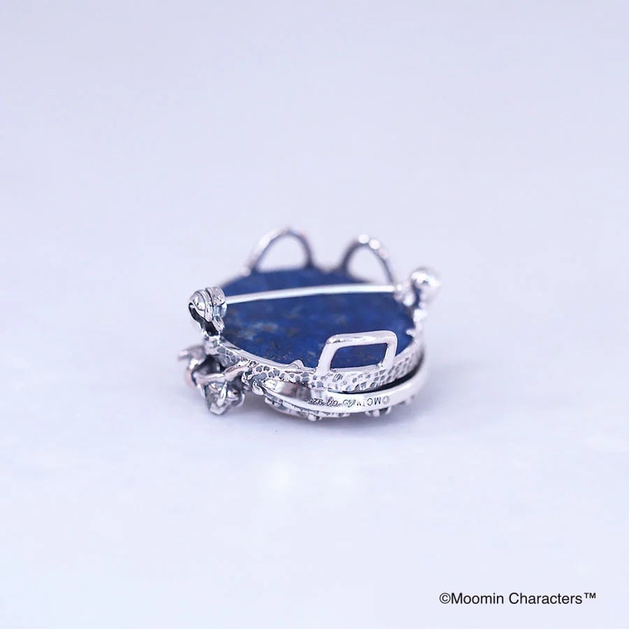ムーミン谷の澄んだ月夜を深く濃いブルーが美しく、古来より聖なる石とされるラピスラズリで、月のきらめきをホワイトトパーズ、夜に咲く花をクォーツとレインボームーンストーンで神秘的に表現しました。大振りなラピスラズリを使用していますが、商品自体は大きすぎず、アウトラインを丸くお作りしましたのでコーディネートのアクセントとして着けていただきやすいです。