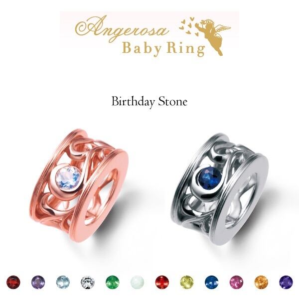 永遠を意味するアラベスク(唐草模様)のリングに誕生石をセットしたベビーリング