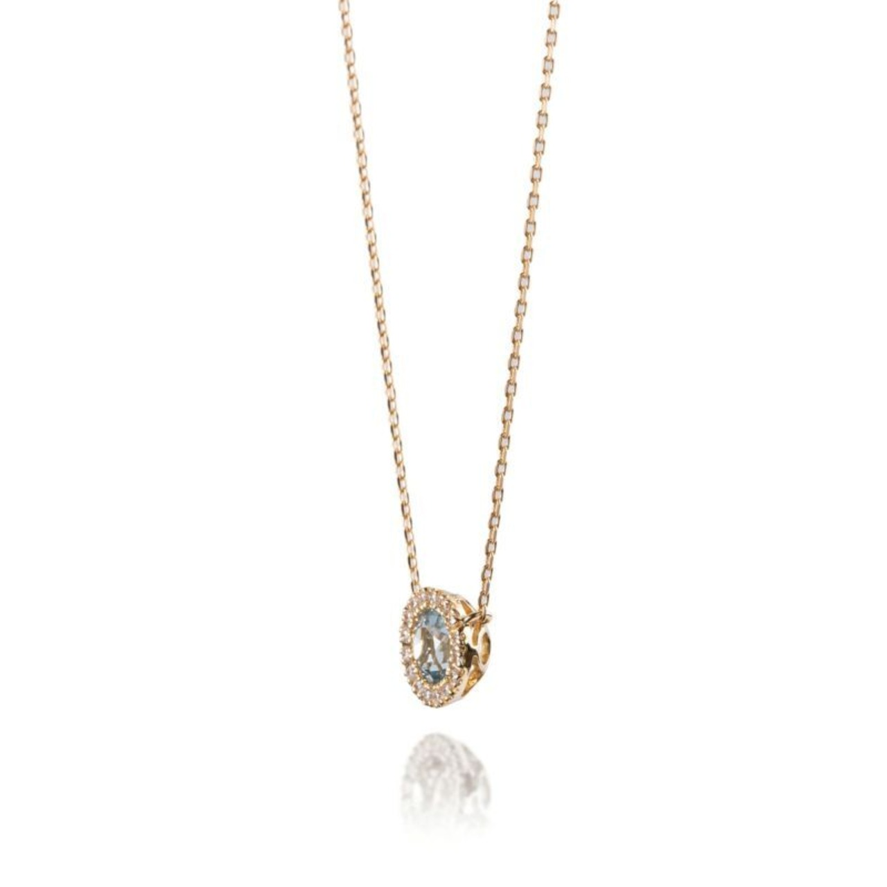 人気のヘイローデザインのアクアマリン誕生石ネックレス