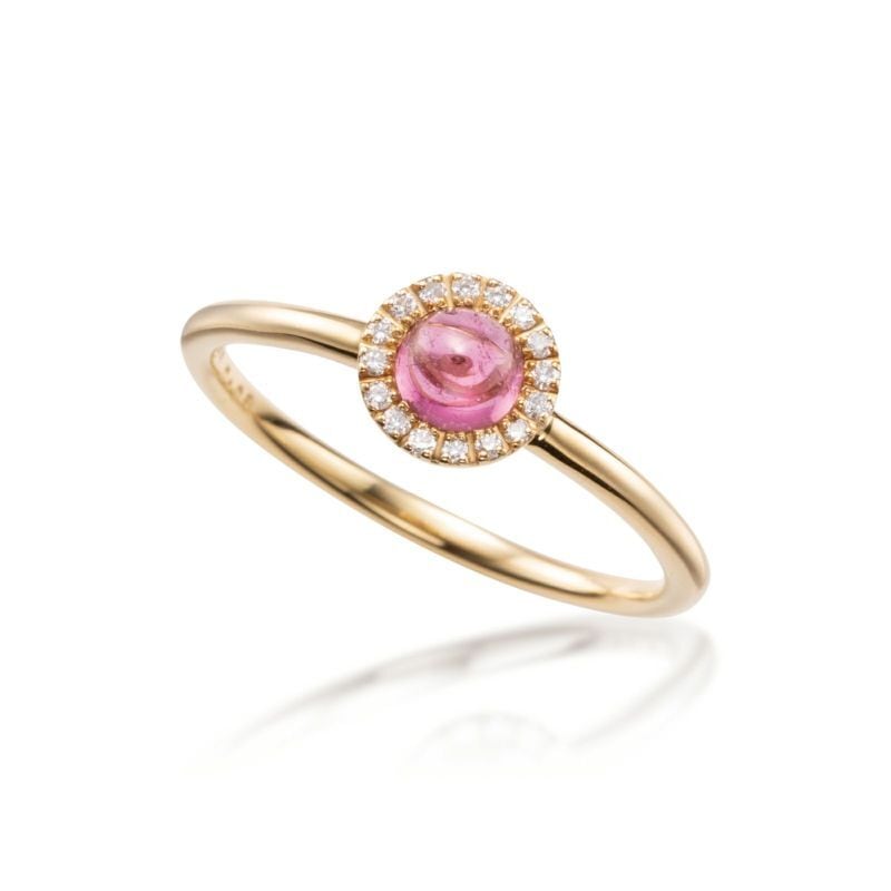 人気のヘイローデザインのピンクトルマリン誕生石リング